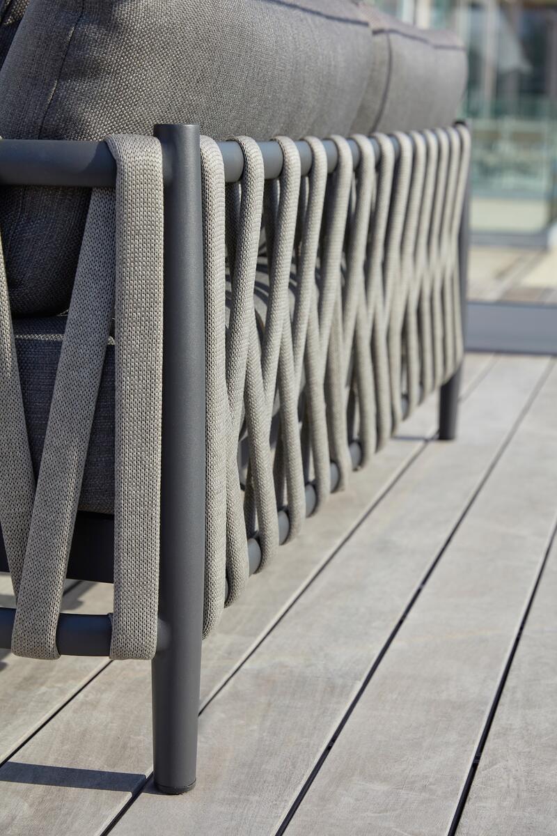 Venkovní pohovka z kolekce Switch Rope nabízí moderní a pohodlné sezení pro venkovní prostory. Je vyrobena z kvalitních materiálů, včetně unikátního lanového výpletu, který dodává pohovce nejen elegantní vzhled, ale i odolnost vůči povětrnostním vlivům.