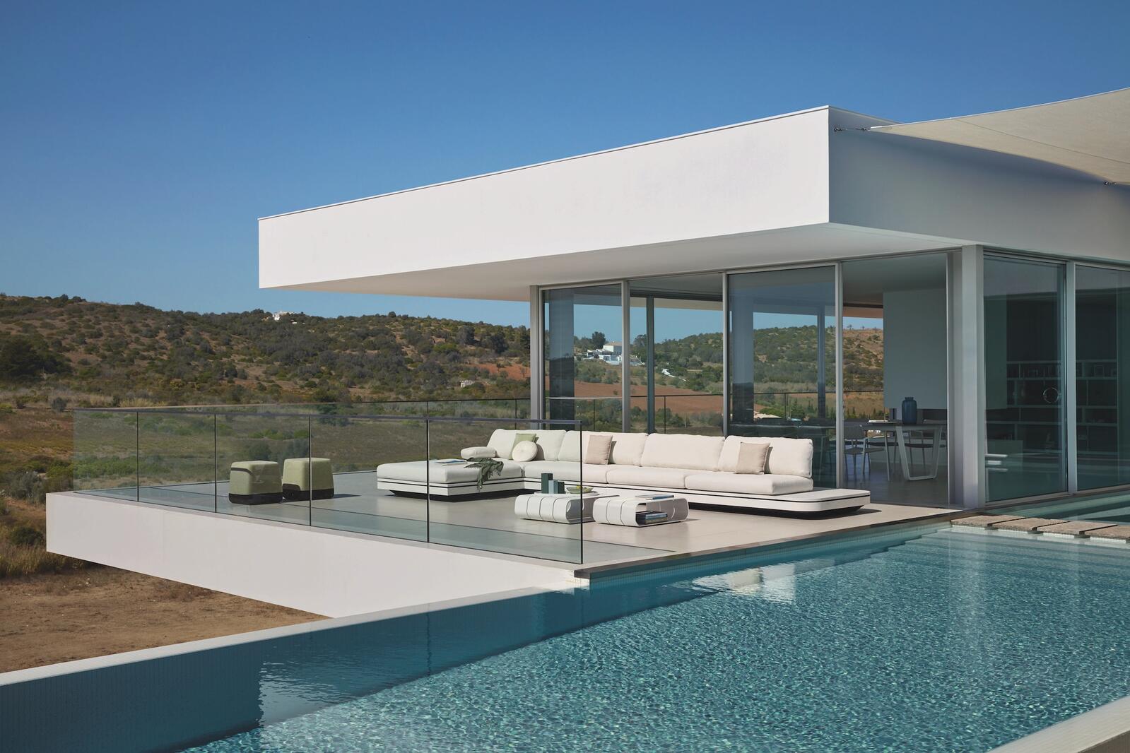 Moderní a ikonický design venkovní sedačky. Modulový systém pro vlastní návrh na míru.