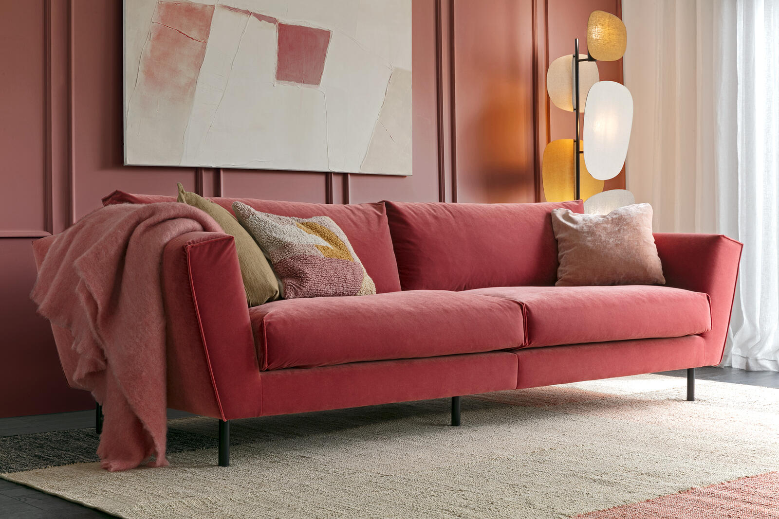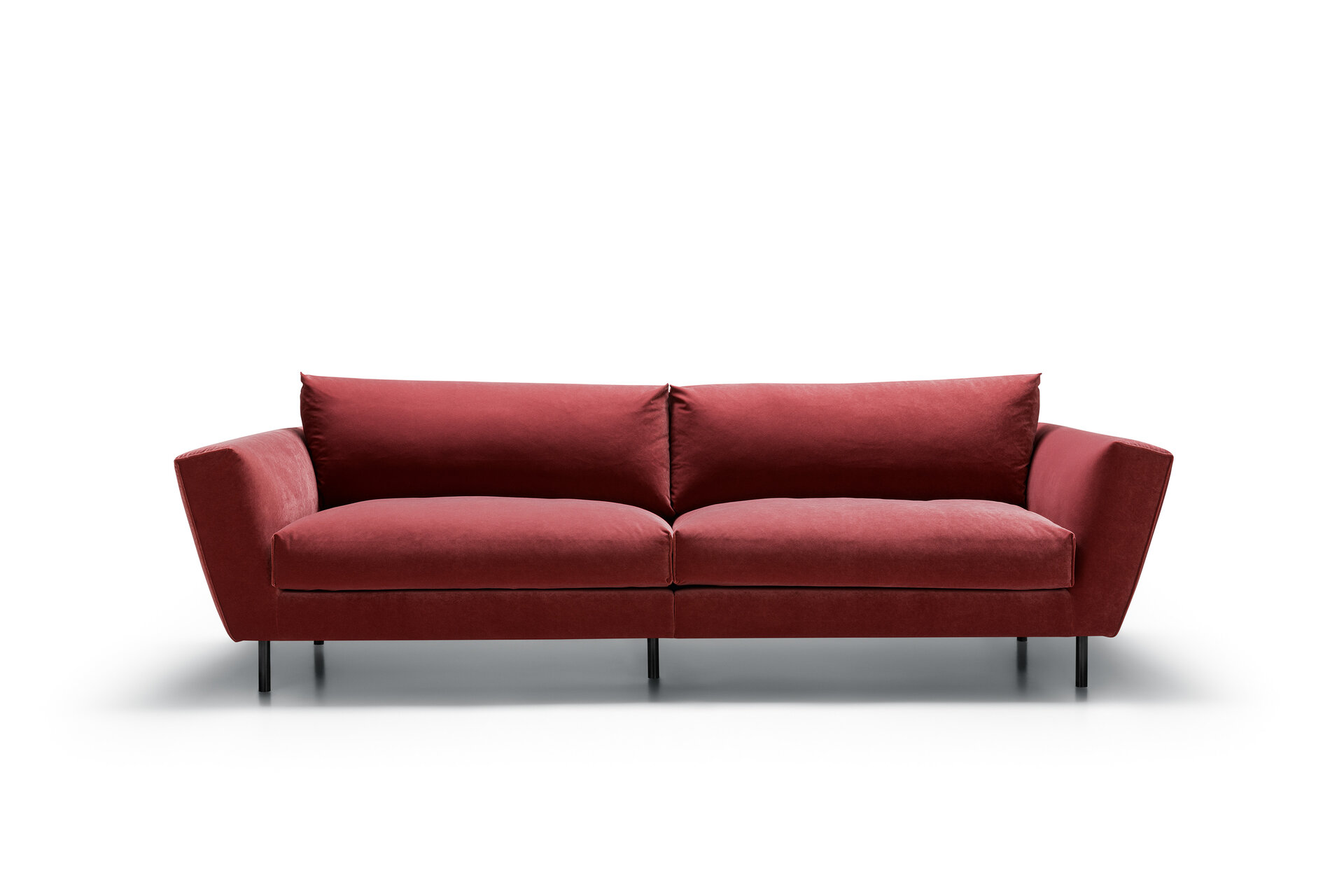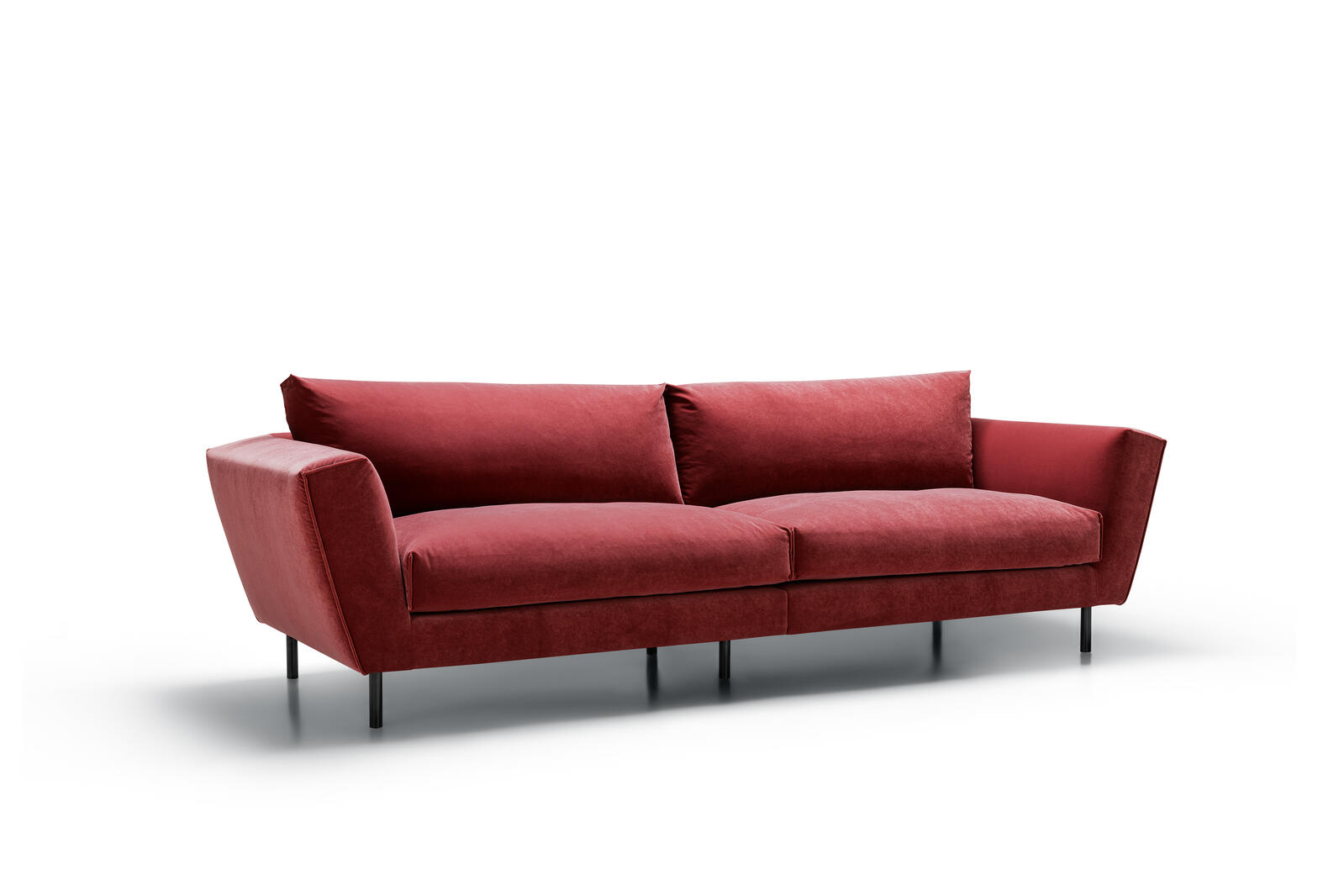 Model pohovky nabízí dvě varianty tvrdosti výplně. A možnost snímatelného potahu. Dřevěná nebo kovová podnož přináší možnost přizpůsobení na míru potřeb interiéru.
