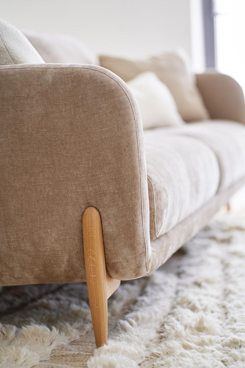 Dřevěná podnož je navržená tak, aby byla nejen funkční ale také zdobný prvek. Opěrné a sedací polštáře jsou pohodlné ale hlavně snímatelné. O sedačku můžete tedy lehce pečovat. V nabídce potahových látek naleznete i s úpravou Aquaclean, které jsou lehce čistitelné. Slušet jí budou béžové odstíny a přírodní materiály látek.