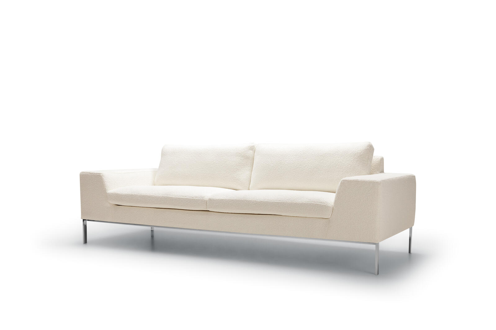 Moderní design pohovky s kovovou podnoží. Možnost péřové výplně nebo koženého čalounění.