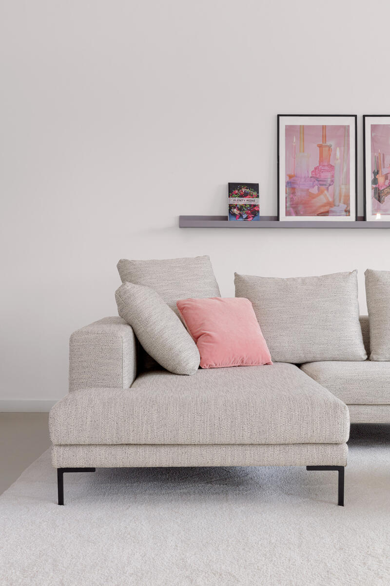 Sestavit můžete dvoumístnou pohovku, sedačku s lenoškou nebo rohovou sedačku. Široké područky jsou praktické. Kovová subtilní podnož dodává sedačce vzdušnost a moderní vzhled.