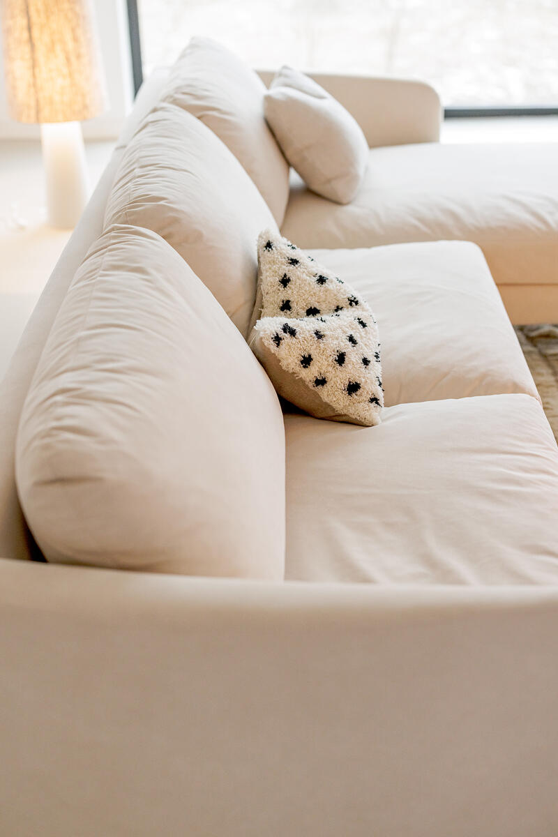 Útulná sedací souprava přináší do interiéru komfort rodinné sedačky. Sluší jí přírodní materiály a béžové odstíny.