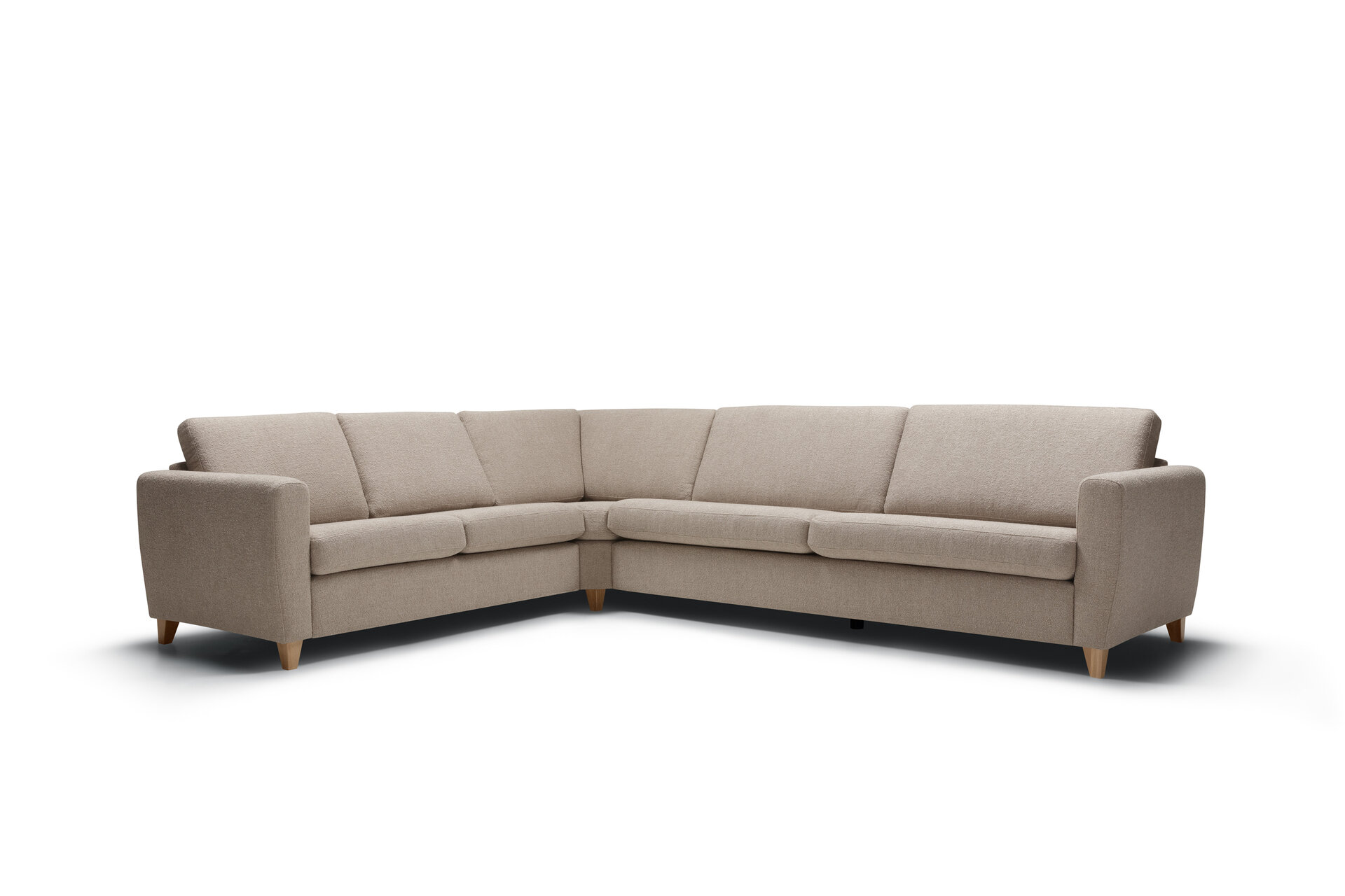 Široká nabídka modulů umožňuje sestavit dvoumístnou pohovku, sedačku s lenoškou, rohovou sedačku nebo sedačku do tvaru L. Taburet s úložným prostorem je všestranný pomocník.