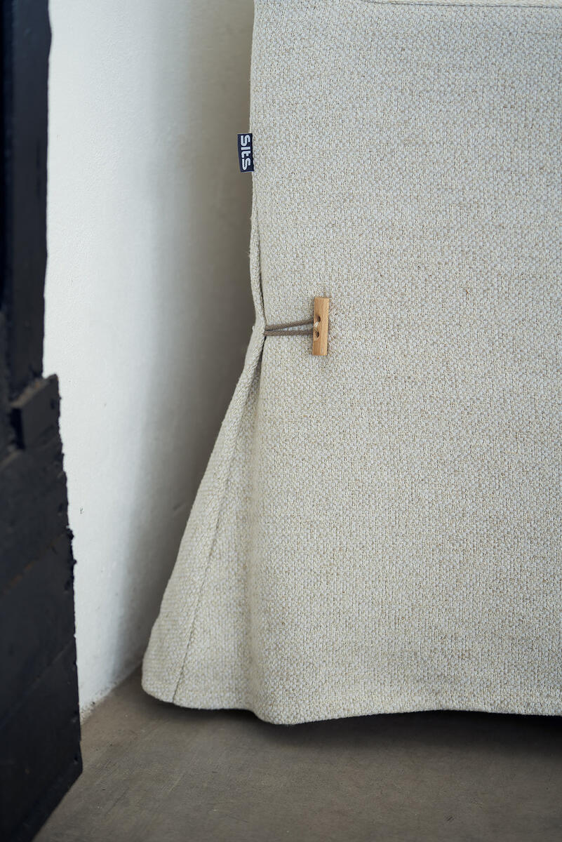 Pohovka Sara přináší do vašeho interiéru neopakovatelnou atmosféru a komfort. Detail dřevěných knoflíků na snímatelnému potahu značí řemeslnost a ruční výrobu, s kterou byla sedačka vyrobena.