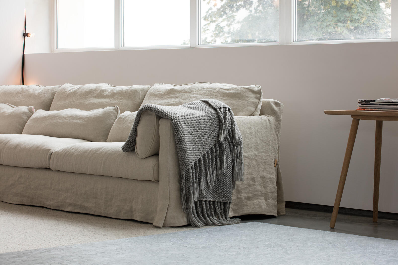 Pohovce sluší přírodní materiály, len, béžové a přírodní odstíny barev.