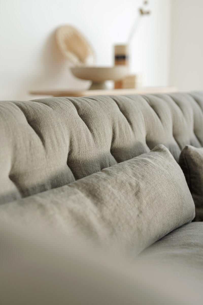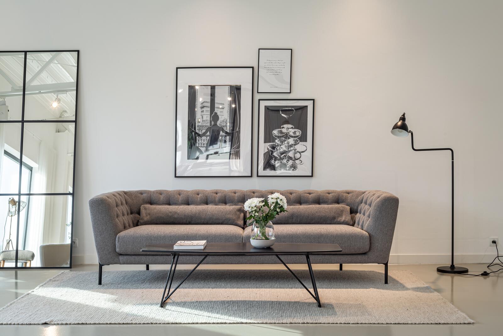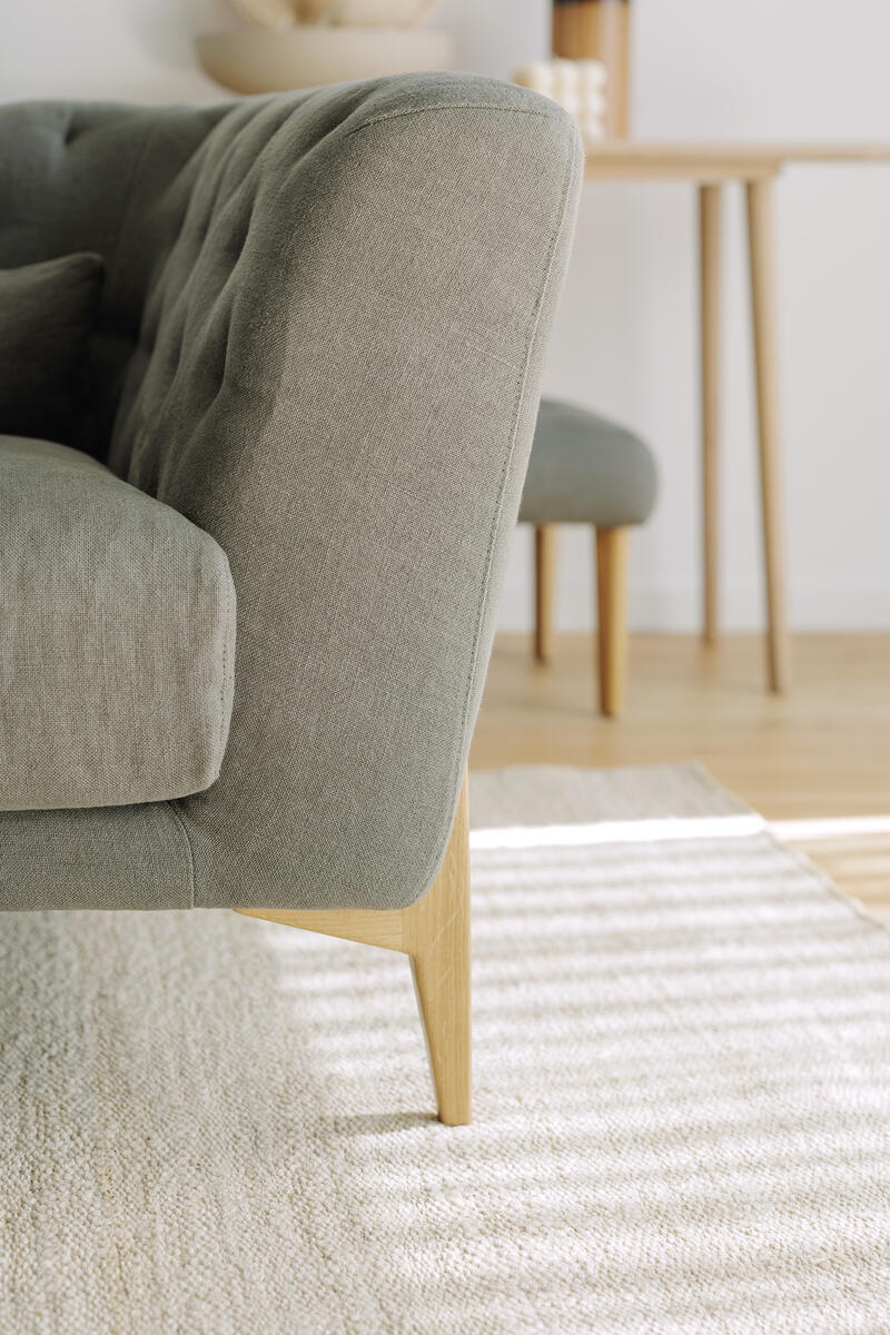 Skandinávský design a komfort sezení. Čalouněná luxusní pohovka. Řemeslná zručnost zpracování.