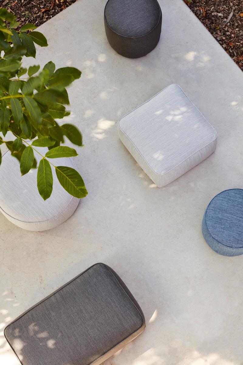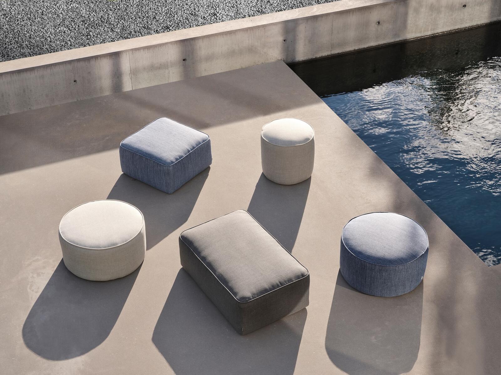 Venkovní puf ve dvou velikostech – ideální jako sezení nebo odkládací stolek.