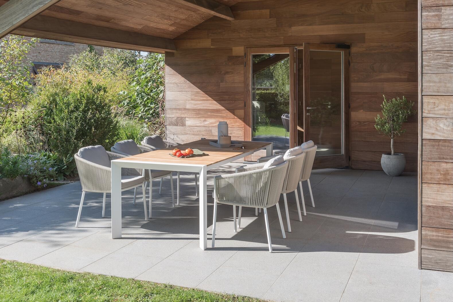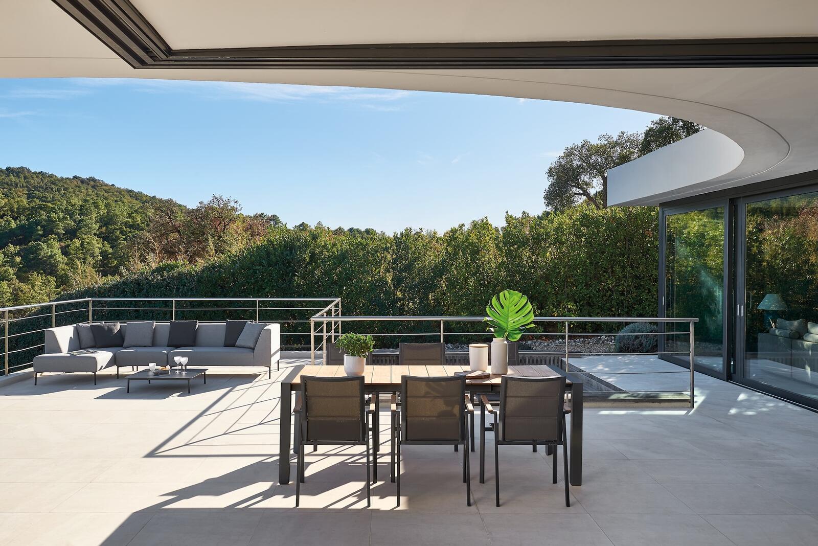 Venkovní rozkládací stůl pro 6 až 10 osob. Kolekce nabízí moderní design a kvalitní materiály.