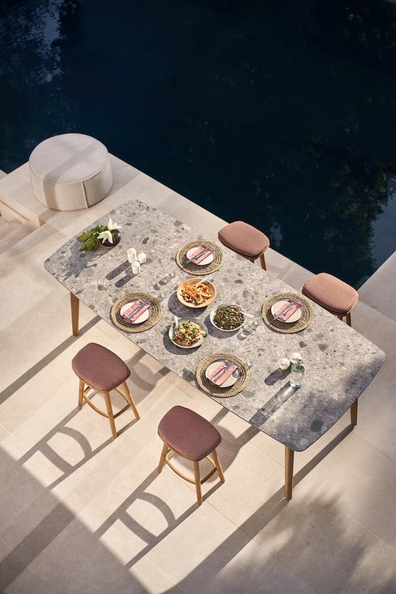 Kvalitní řemeslné zpracování teakového dřeva v kombinaci s praktickým a pohodlným sedákem přináší neopakovatelný komfort pro dlouhé večery s přáteli a rodinou.