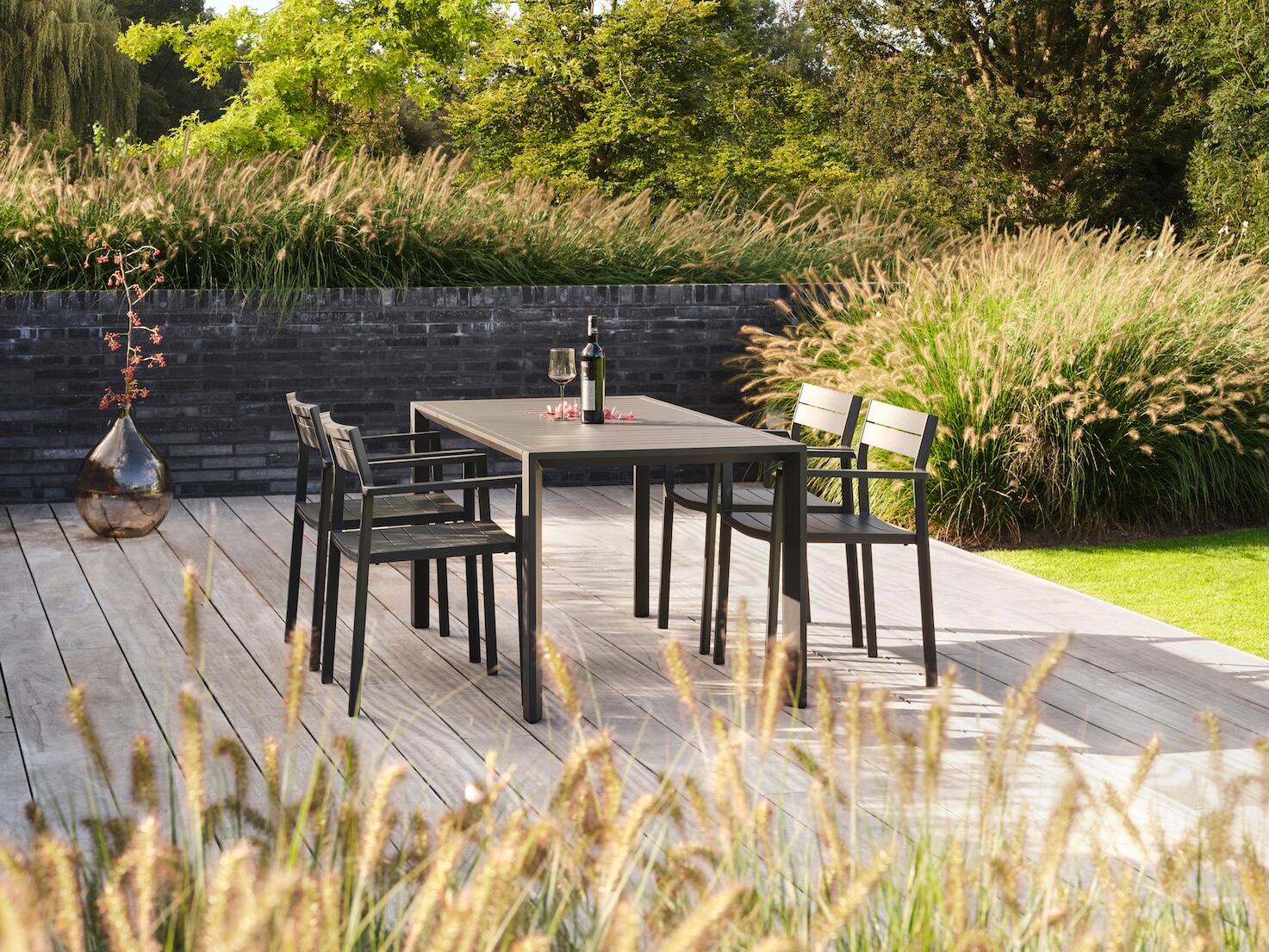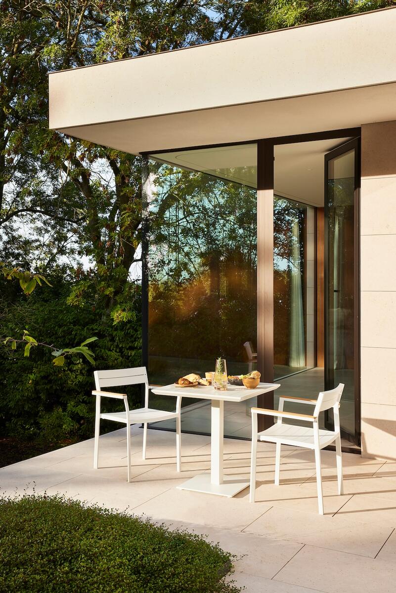 Venkovní jídelní židle Metris kombinuje moderní design, komfort a odolnost. Díky rámu z práškově lakovaného hliníku je lehká, pevná a odolná vůči povětrnostním vlivům, což z ní dělá skvělou volbu pro terasu, zahradu i balkon. K dispozici je ve dvou elegantních barvách, které snadno sladíte s ostatním venkovním nábytkem.
