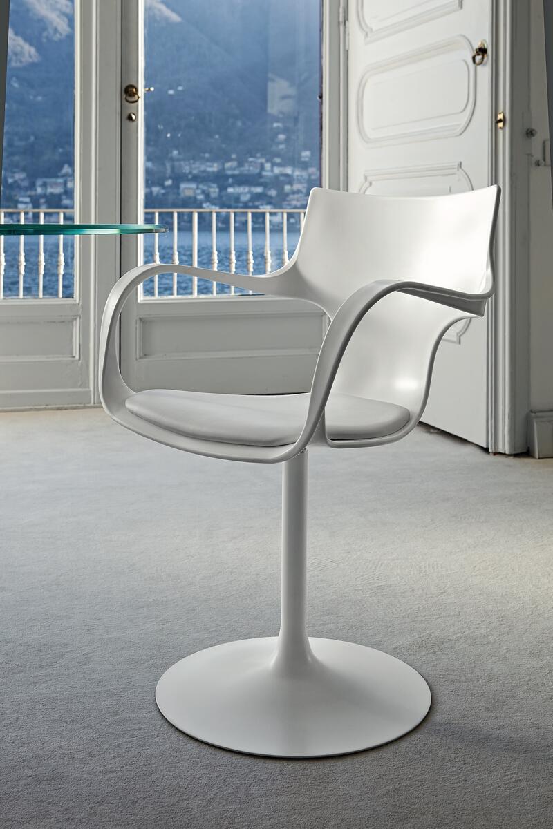 Otočná jídelní židle Flute se středovou podnoží přináší komfort a stabilitu. Područky pro maximální pohodlí jsou nejen příjemné ale navíc praktické.