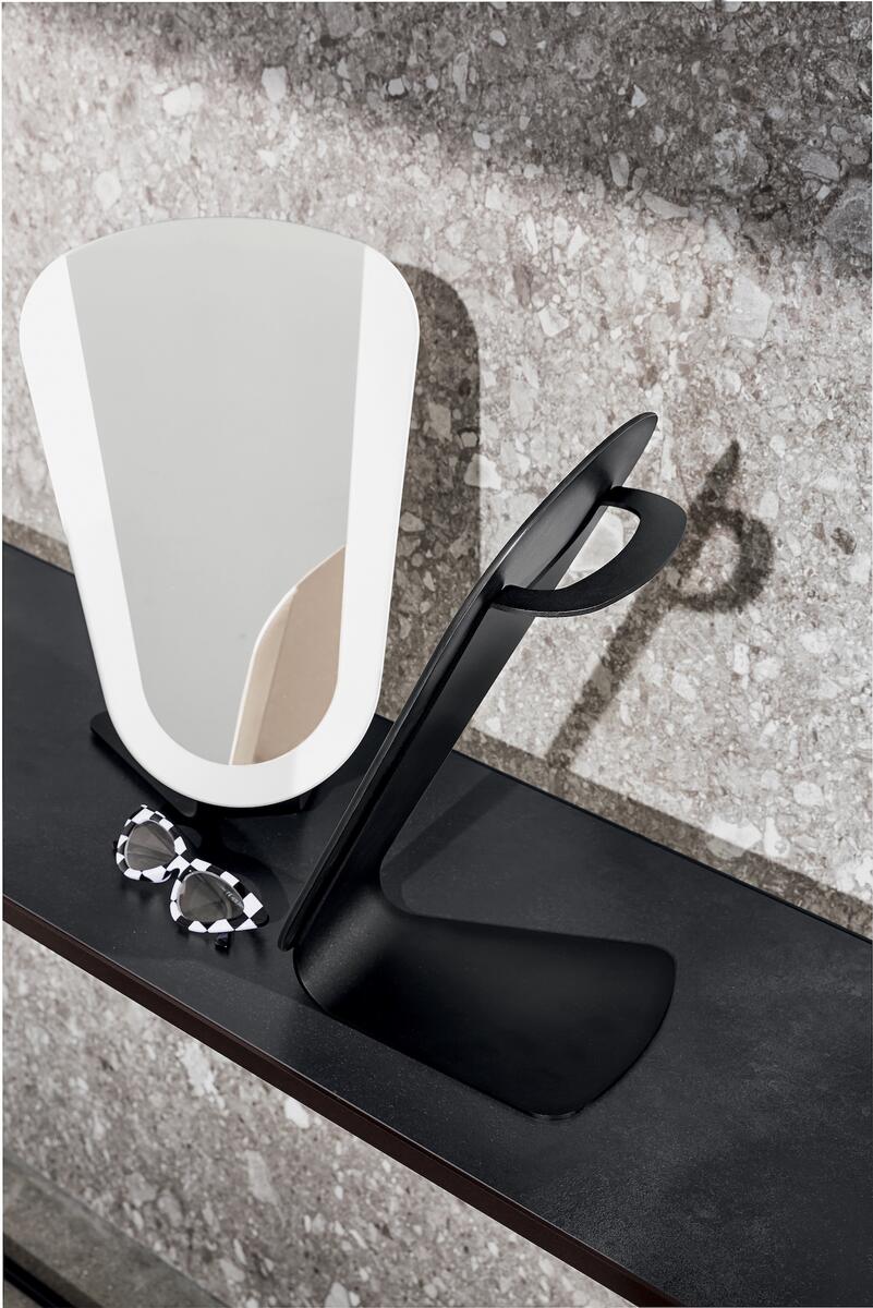 Zaoblené linie této kolekce zrcadel přináší hravost a designový prvek do vašeho interiéru. Jejich zpracování broušeného rámu však nenechává nikoho na pochybách o kvalitním zpracování. Vybírat můžete z různých barevných odstínů skla – čisté, kouřové, růžové, bronzové nebo zlaté. Díky závěsnému systému na zeď nebo samostojnému systému je tato kolekce univerzálním doplňkem každého interiéru. Stolní zrcadlo je navíc perfektním společníkem do koupelny nebo na toalentí stolek.